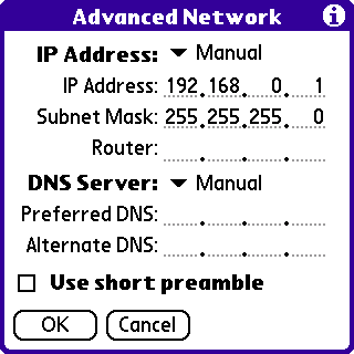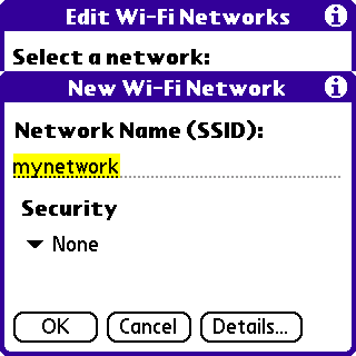 WiFi network configuration - AdHoc - Palm / palmOne: